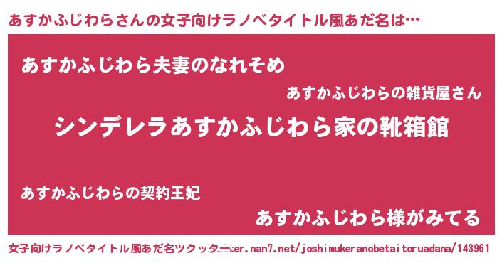 | 男性向けラノベタイトル風あだ名 | 『緋弾のアスカフジワラ』 |