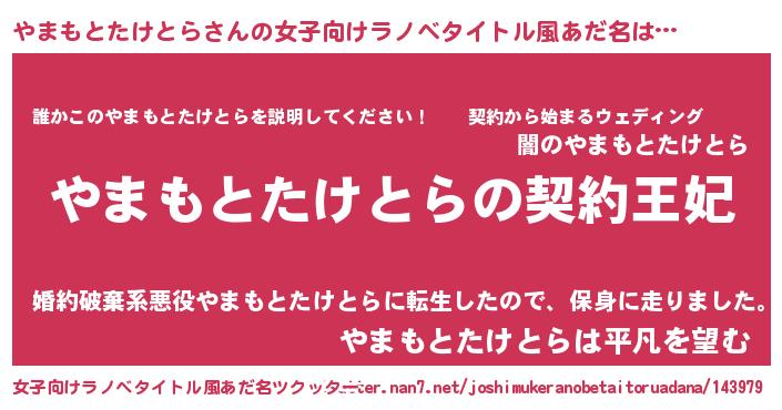 | 男性向けラノベタイトル風あだ名 | 『誰もが恐れるあのやまもとたけとらが、ぼくの専属メイドになるようです。』 |