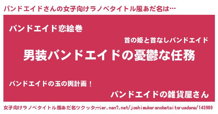 | 男性向けラノベタイトル風あだ名 | 『うちのバンドエイドが世界を掌握している!』 |