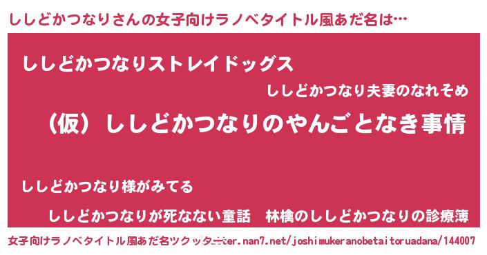 | 男性向けラノベタイトル風あだ名 | 『ししどかつなりの憂鬱』 |