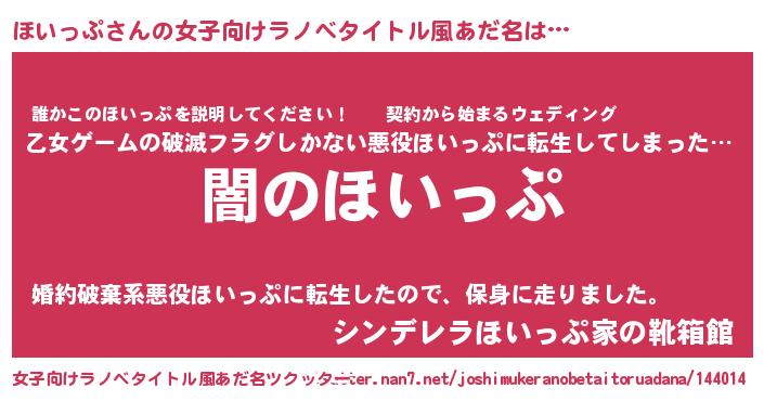| 男性向けラノベタイトル風あだ名 | 『Re:ほいっぷから始める異世界生活』 |