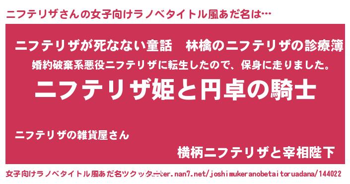| 男性向けラノベタイトル風あだ名 | 『ニフテリザアートオンライン』 |