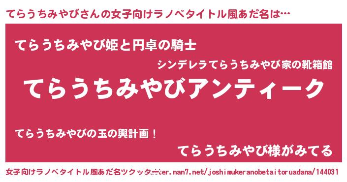 | 欧米人風あだ名 | 『ケンブリッジてらうちみやび』 |