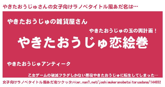 | ヒーロー風カッコイイあだ名 | 『慈愛の使者やきたおうじゅ』 |