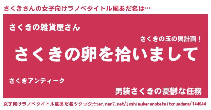 | 胡散臭い通販商品みたいなあだ名 | 『伝統あるサプリメント…その名も「さくき」』 |