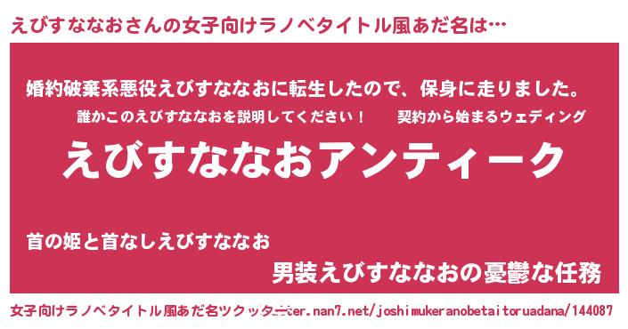 | 意味不明あだ名 | 『自称えびすななお』 |