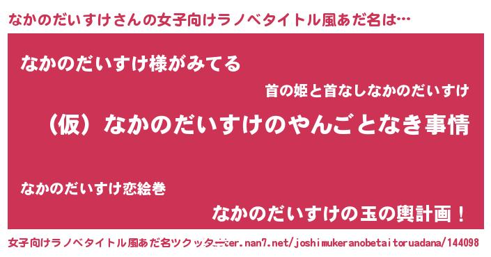 | 男性向けラノベタイトル風あだ名 | 『なかのだいすけの憂鬱』 |