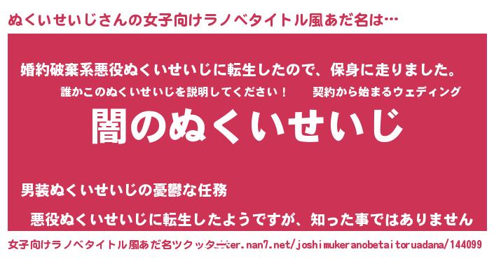 | 欧米人風あだ名 | 『ケンブリッジぬくいせいじ』 |
