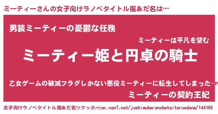 | 男性向けラノベタイトル風あだ名 | 『ミーティーアートオンライン』 |