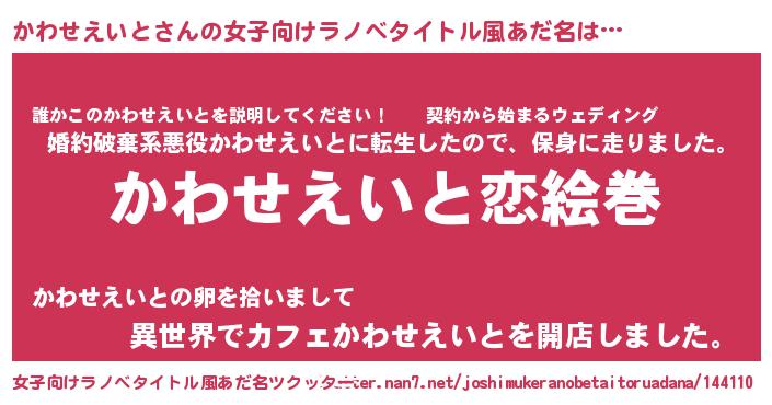 | 男性向けラノベタイトル風あだ名 | 『ノーゲーム・ノーカワセエイト』 |