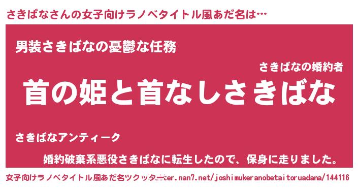 | 男性向けラノベタイトル風あだ名 | 『はたらくさきばなさま!』 |