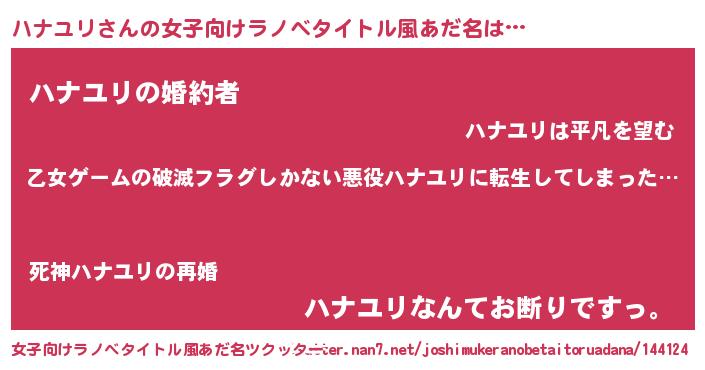| 男性向けラノベタイトル風あだ名 | 『この素晴らしい世界にハナユリを!』 |