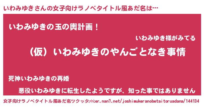 | 肩書あだ名 | 『いわみゆきCEO』『いわみゆき中尉』 |