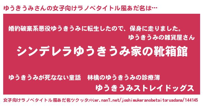 | 男性向けラノベタイトル風あだ名 | 『緋弾のユウキウミ』 |