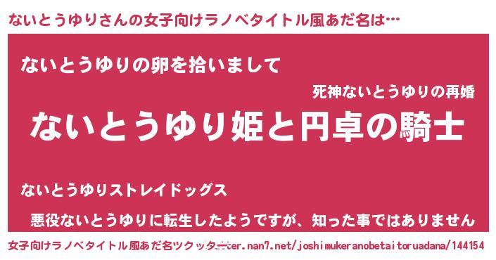 | 男性向けラノベタイトル風あだ名 | 『ないとうゆりの憂鬱』 |