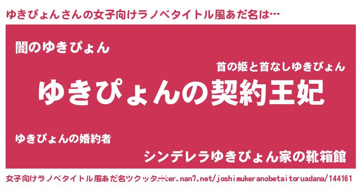 | 男性向けラノベタイトル風あだ名 | 『ゆきぴょんという概念が存在しない退屈な世界 』 |