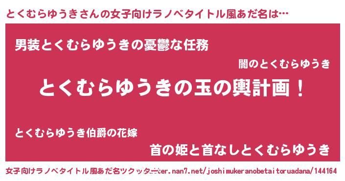 | 恥ずかしいあだ名 | 『トクムラユウキデラックス』『とくちん』 |