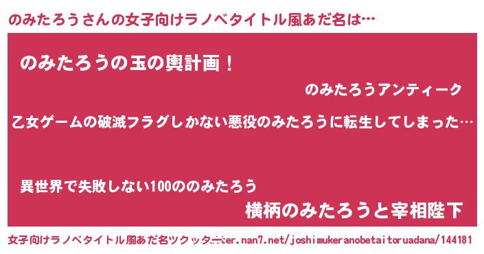| 意味不明あだ名 | 『住所不定無職のみたろう(68歳)』 |