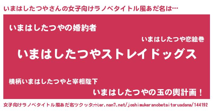| 男性向けラノベタイトル風あだ名 | 『Re:いまはしたつやから始める異世界生活』 |