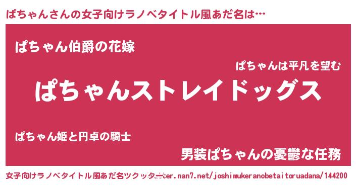 | 意味不明あだ名 | 『自称ぱちゃん』『ぱちゃんフォーエバー』 |