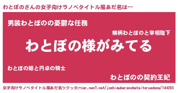 | 胡散臭い通販商品みたいなあだ名 | 『全米が絶賛したサプリメント…その名も「わとぼの」』 |