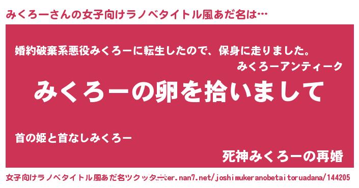 | 意味不明あだ名 | 『とにかく怪しいみくろー』 |