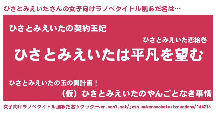 | 男性向けラノベタイトル風あだ名 | 『ダンジョンにひさとみえいたを求めるのは間違っているだろうか』 |