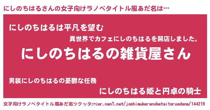 | 男性向けラノベタイトル風あだ名 | 『やはりにしのちはるの青春ラブコメはまちがっている 』 |