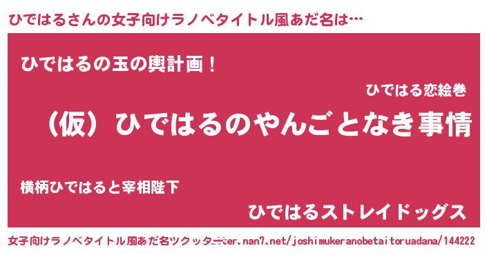 | 男性向けラノベタイトル風あだ名 | 『ひではるの憂鬱』 |