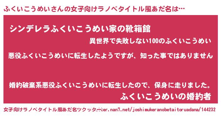 | 意味不明あだ名 | 『住所不定無職ふくいこうめい(9歳)』 |