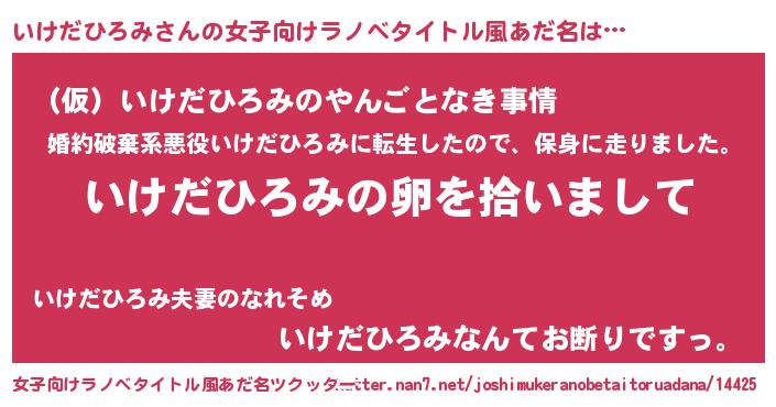 | 男性向けラノベタイトル風あだ名 | 『いけだひろみの嫁は女の子じゃないと思った?』 |