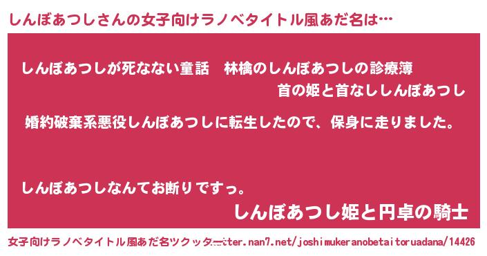 | 男性向けラノベタイトル風あだ名 | 『転生したらしんぼあつしだった件』 |
