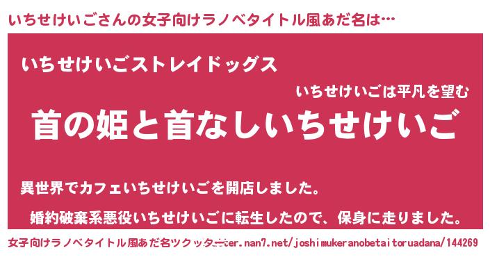 | 意味不明あだ名 | 『自称いちせけいご』 |