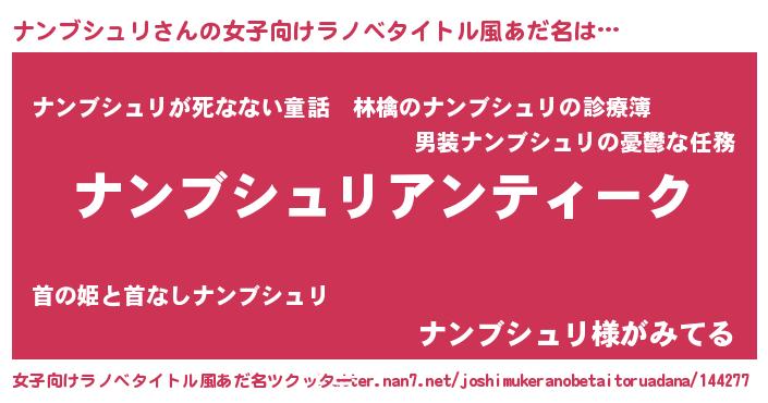 | 男性向けラノベタイトル風あだ名 | 『魔法科高校のナンブシュリ』 |