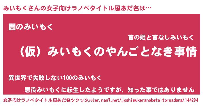 | 男性向けラノベタイトル風あだ名 | 『みいもくの憂鬱』 |