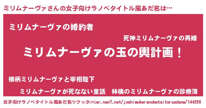 | 胡散臭い通販商品みたいなあだ名 | 『運命の人と巡り会える高級そうな皿…その名も「ミリムナーヴァ」』 |