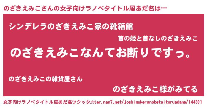 | 意味不明あだ名 | 『自称のざきえみこ』 |
