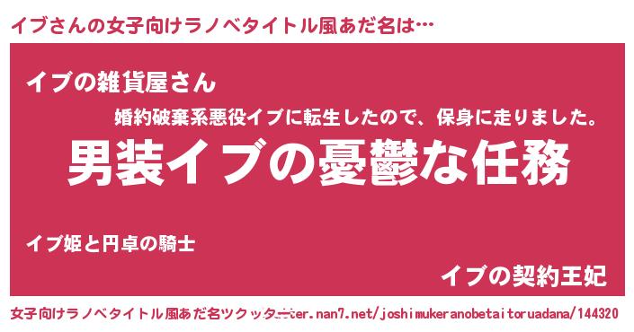 | 胡散臭い通販商品みたいなあだ名 | 『運命の人と巡り会える高級そうな絵画…その名も「イブ」』 |