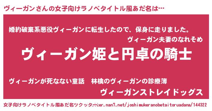 | 男性向けラノベタイトル風あだ名 | 『ヴィーガンアートオンライン』 |