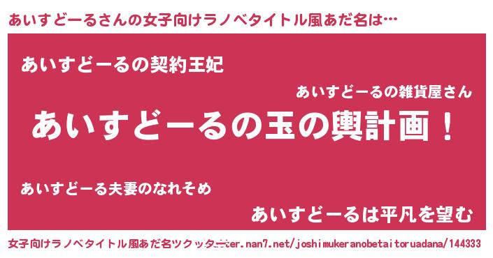 | ヘコむあだ名 | 『あいすどーる(笑)』『あいを』 |