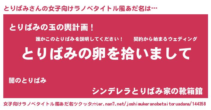 | 男性向けラノベタイトル風あだ名 | 『ダンジョンにとりばみを求めるのは間違っているだろうか』 |