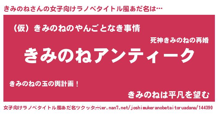| 肩書あだ名 | 『きみのね閣下』『きみのね社長』 |
