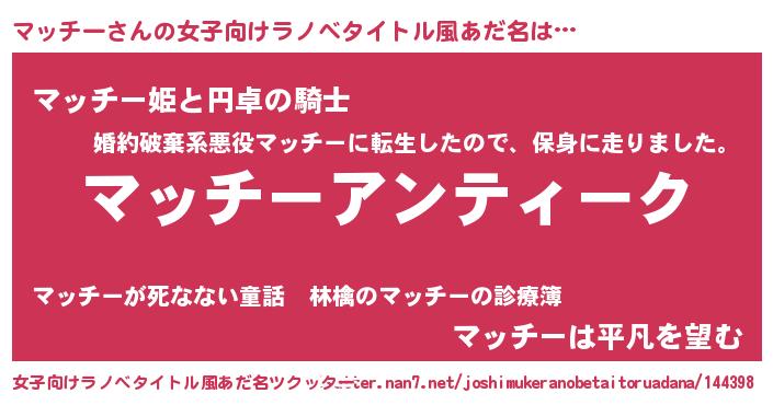 | 男性向けラノベタイトル風あだ名 | 『魔法科高校のマッチー』 |