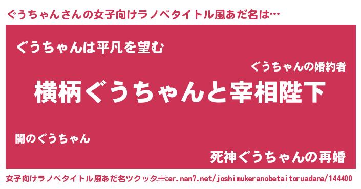 | 男性向けラノベタイトル風あだ名 | 『ぐうちゃんに滅ぼされるだけの簡単なお仕事です』 |