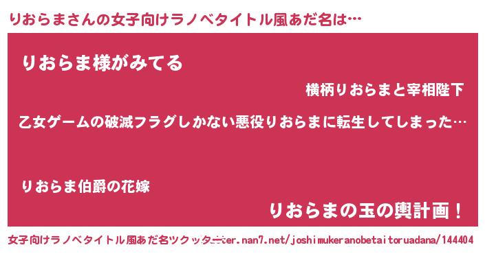 | 胡散臭い通販商品みたいなあだ名 | 『世界中を虜にした世界で10本だけ現存している希少なブランデー…その名も「りおらま」』 |