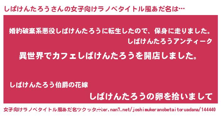| 意味不明あだ名 | 『永久保存しばけんたろう』 |