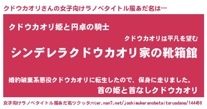 | 胡散臭い通販商品みたいなあだ名 | 『モテモテ間違いなしブレスレット…その名も「クドウカオリ」』 |