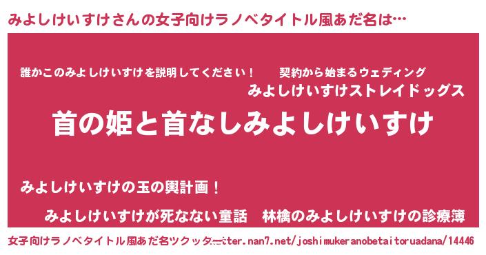 | 男性向けラノベタイトル風あだ名 | 『はたらくみよしけいすけさま!』 |