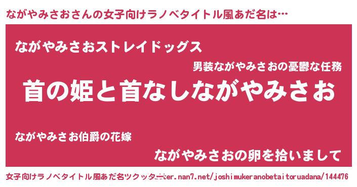 | 男性向けラノベタイトル風あだ名 | 『はたらくながやみさおさま!』 |