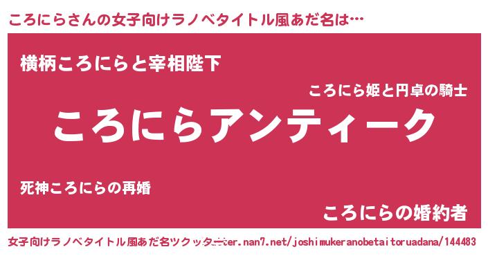 | 肩書あだ名 | 『ころにら閣下』『ころにら総理大臣』 |